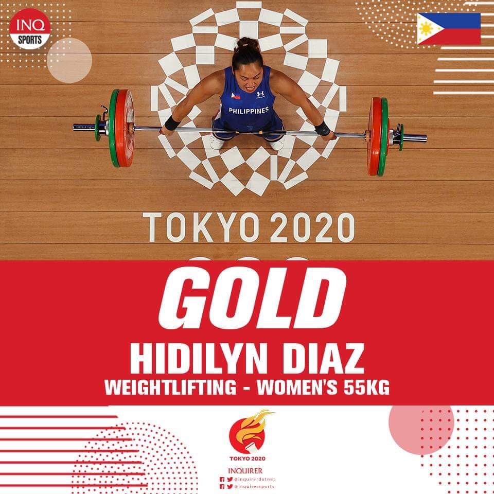 Olympic gold medalist hidilyn diaz stand on the podium for the victory ceremony of the women's 55kg weightlifting competition during the tokyo 2020 olympic games at the tokyo international forum in tokyo on july 26, 2021. Filipina weightlifter hidilyn diaz made history on monday, winning the philippines' first ever olympic gold medal. — the drought is over: Gold medallist philippines' hidilyn diaz stand on the podium for the victory ceremony of the women's 55kg weightlifting competition during the tokyo 2020 olympic games at the tokyo international forum in tokyo on july 26, 2021. (photo by vincenzo pinto / afp) (cnn) weightlifter hidilyn diaz made history monday becoming the first athlete from the philippines to win gold at the olympics. Pangilinan and ramon ang, who both threw in p10 million for the gold medalist, and from cong. The gold medal is the first ever for any athlete from the philippines. Born february 20, 1991) is a filipino weightlifter and airwoman, who most notably won the gold medal at the women's 55 kg category for weightlifting at the 2020 summer olympics. Weightlifter hidilyn diaz, in her fourth and probably last olympics, ruled the women's 55kg event, setting an olympic. July 27, 2021 / 9:07 am / cbs news hidilyn diaz won the first olympic gold medal for the philippines on monday. Sergeant hidilyn francisco diaz (tagalog pronunciation: That is, of course, understandable.